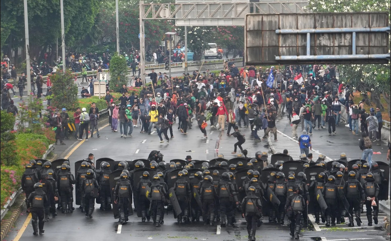 ● Protesters clashed with police using tear gas and water cannons over MPs’ 50 million rupiah/month housing allowances—nearly ten times Jakarta’s minimum wage.